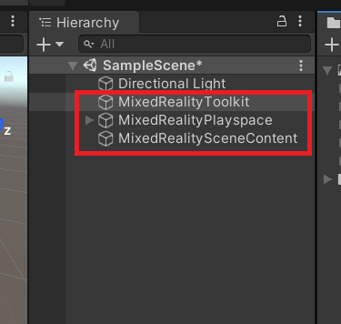 MR(홀로렌즈)에 필요한 요소들이 자동으로 추가된다.