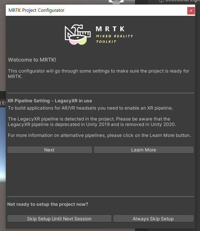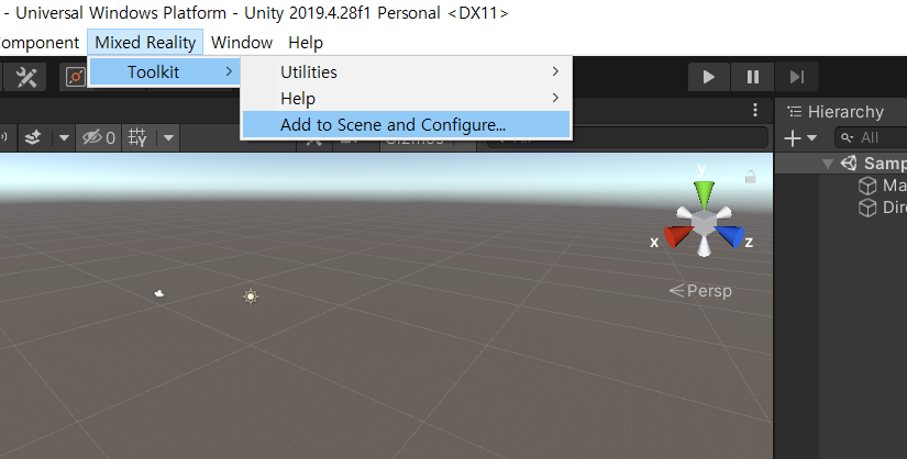 Mixed Reality - Toolkit - Add to Scene and Configure를 눌러준다.