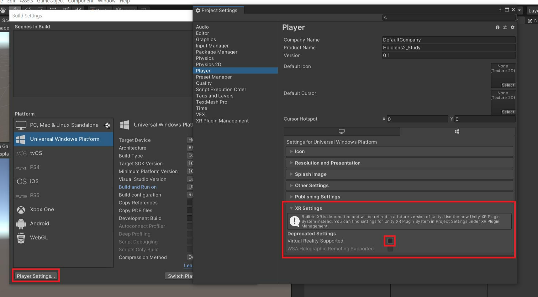 XR 세팅에 표시해둔 곳에 체크를 해준다.