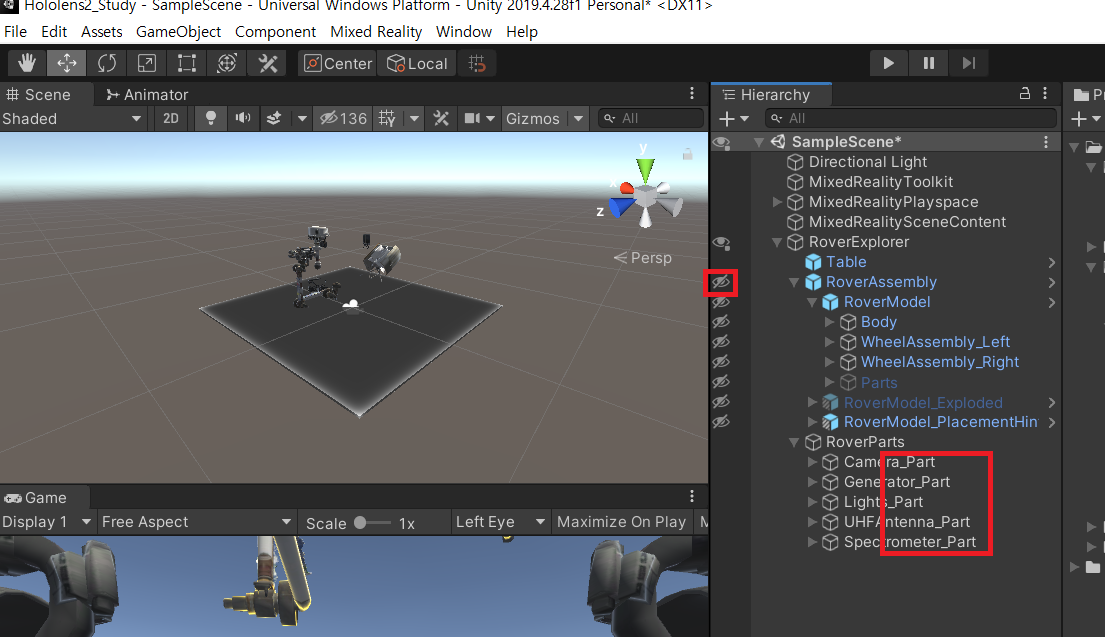 RoverAssembly의 눈을 눌러서 시야를 꺼버리면