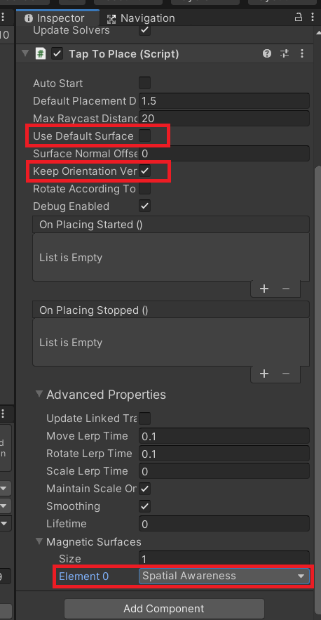 Tap To Place에서 첨부한 이미지처럼 설정값을 변경해준다.