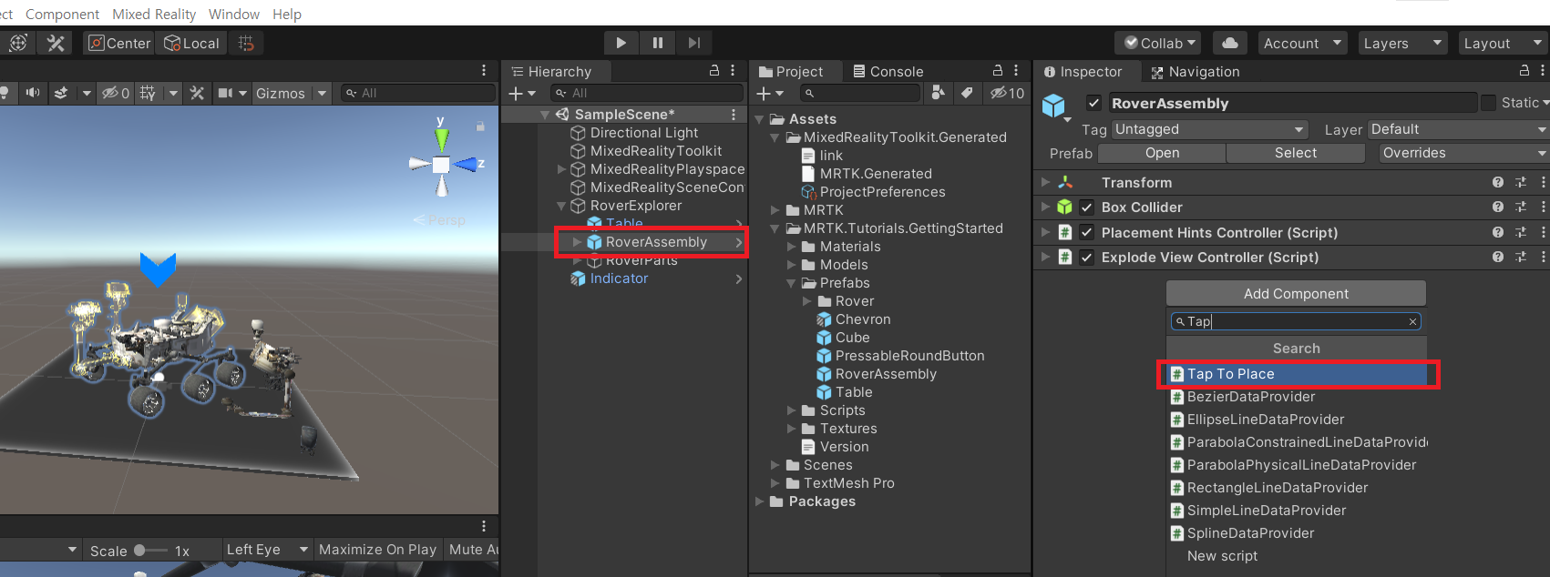 RoverAssembly에 손가락 Ray를 맞춘 뒤에