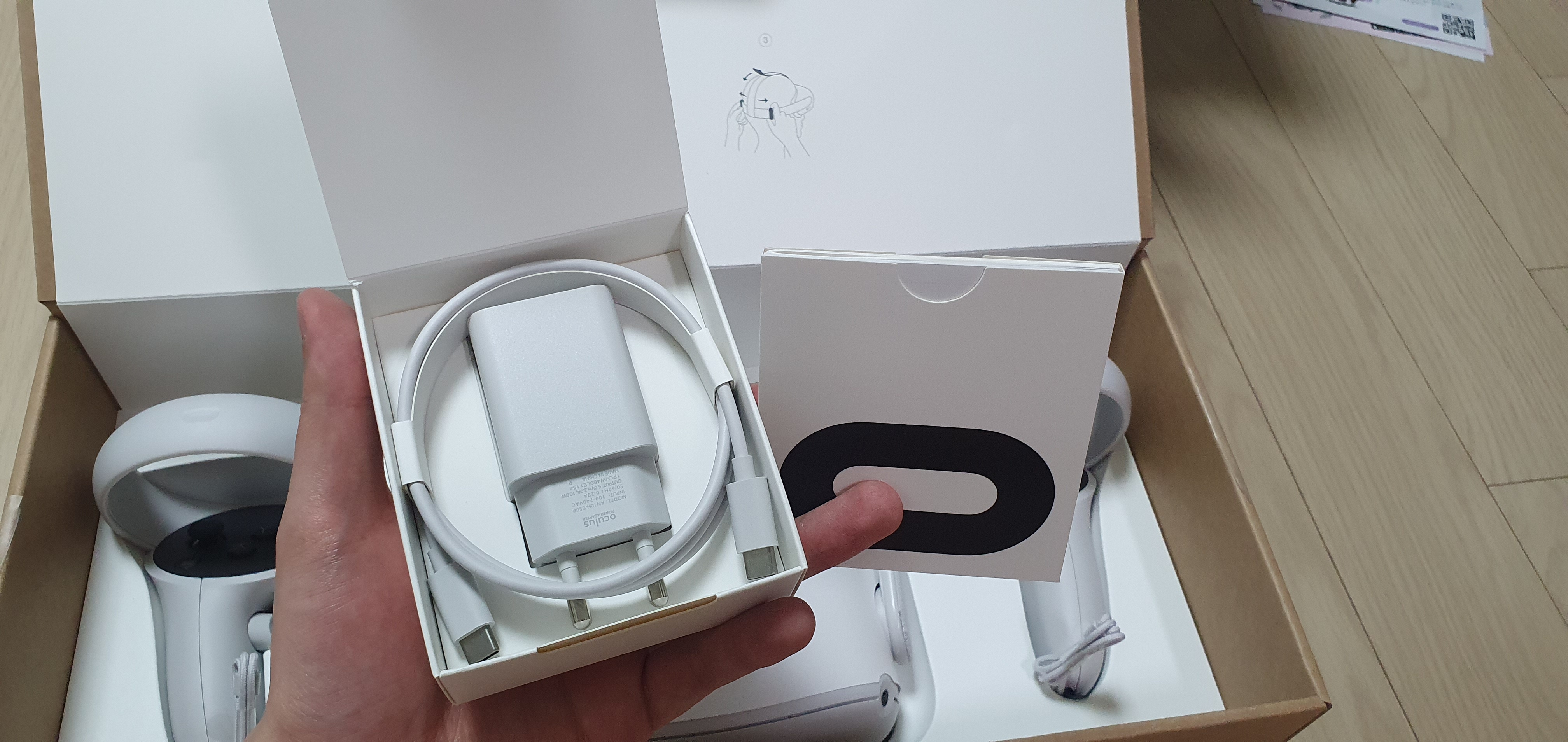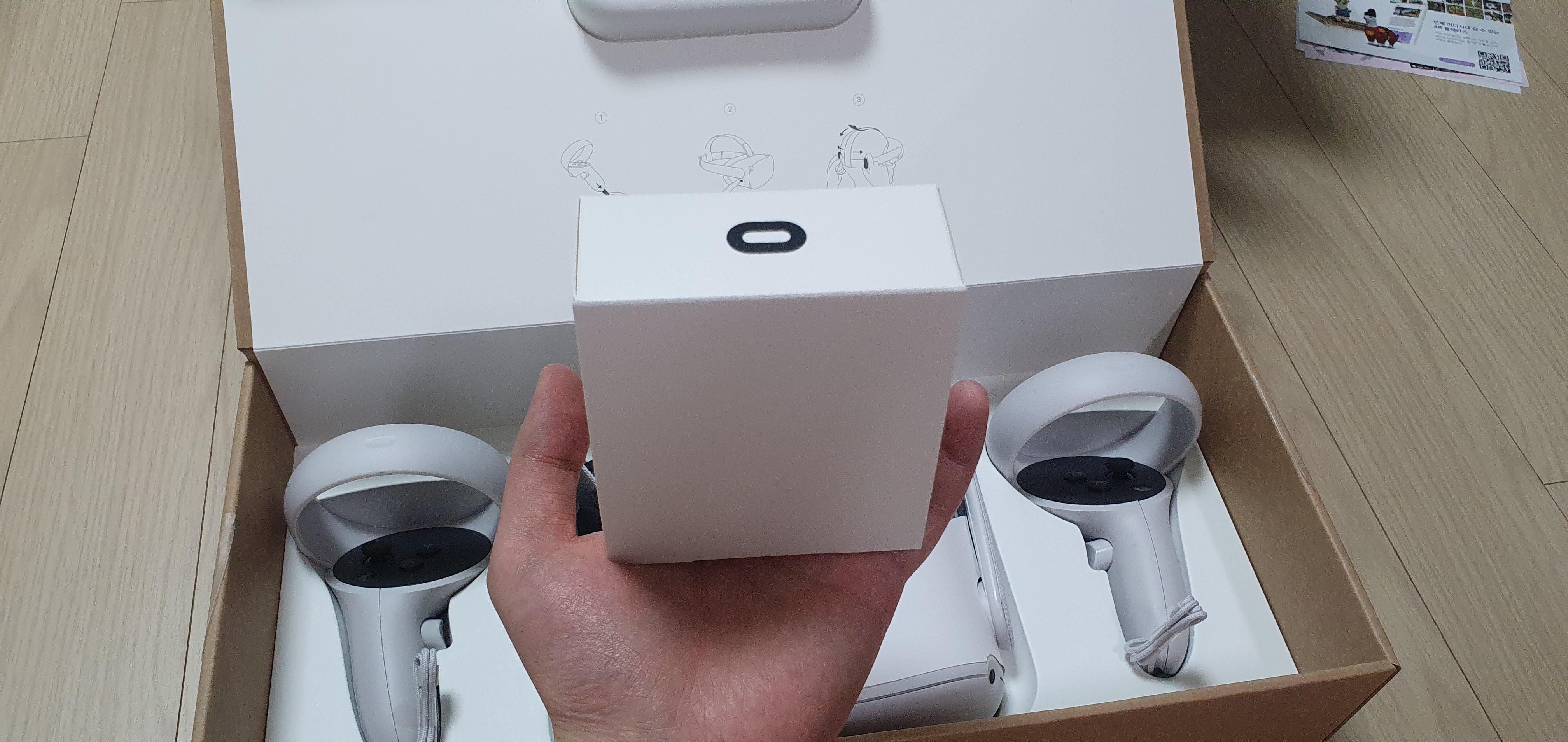 일단 박스를 까보면, 오큘러스 퀘스트가 들어있는 상자랑 광고지가 들어있다.