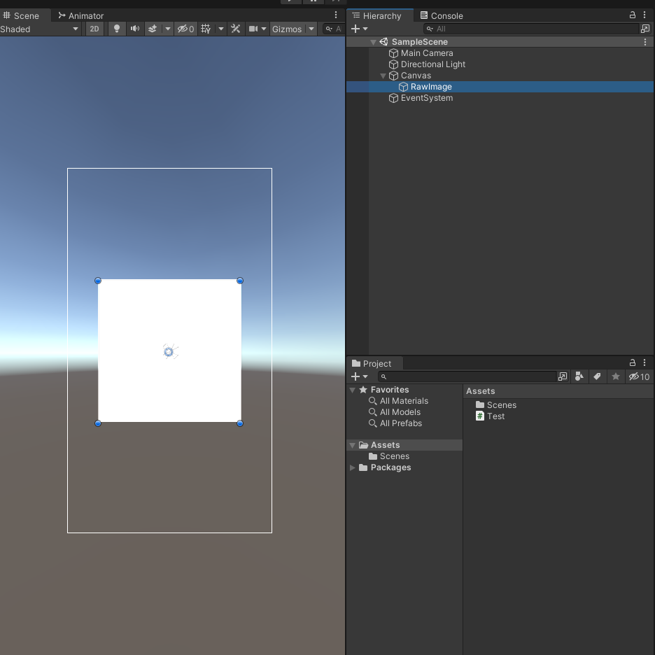RawImage를 하나 생성해서 중앙에 잘 보이게 배치해준다.