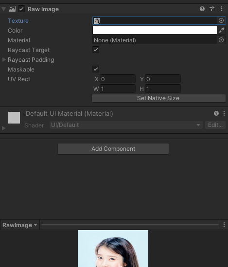 해당 이미지는 유니티 상에 존재하는 것이 아니라 서버에서 가져온 것이기 때문에 rawimage의 인스펙터창을 보면,
