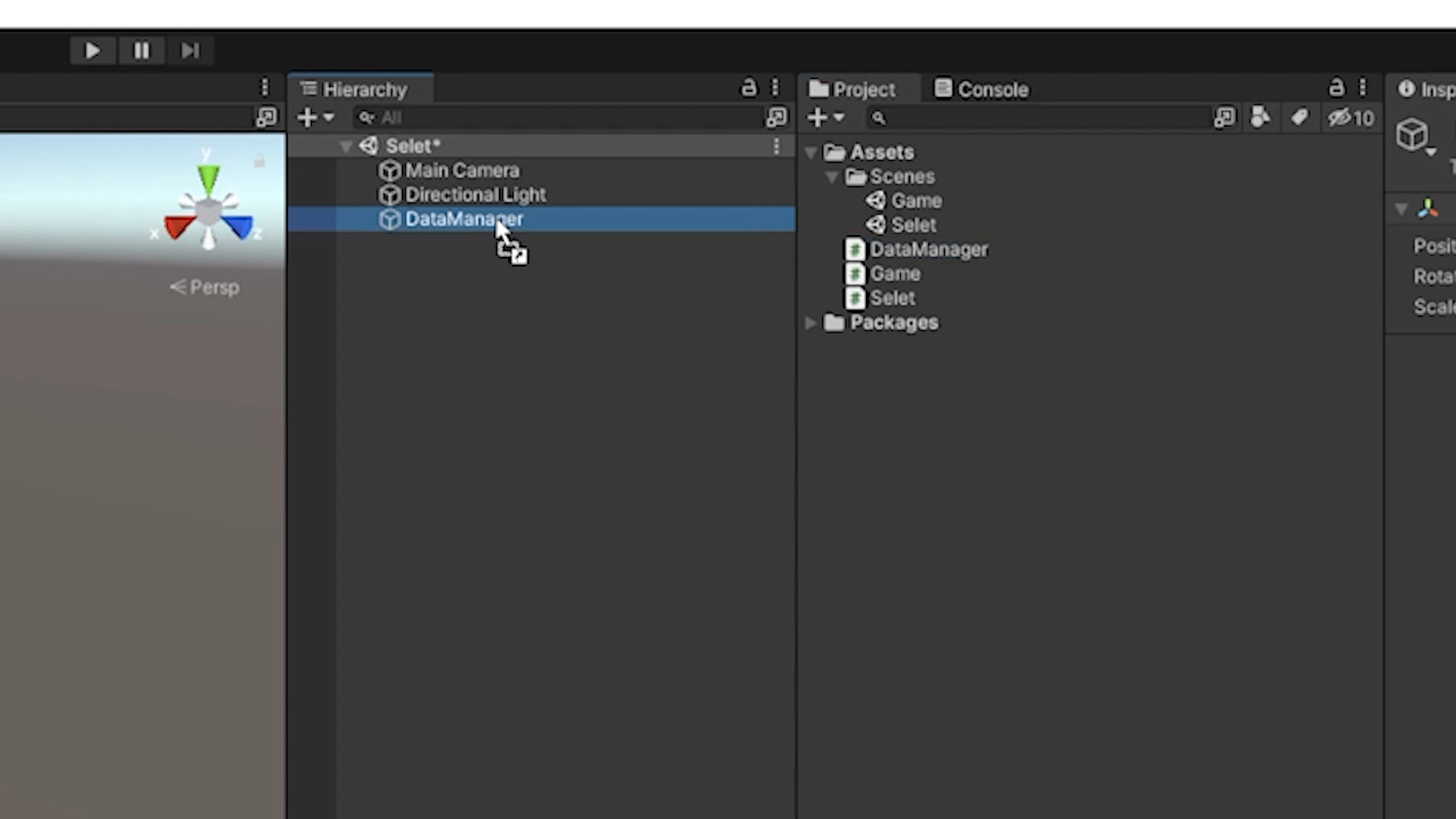 하이어라키창에서 우클릭을 하여 Create Empty를 눌러 오브젝트를 하나 생성한 뒤 이름을 Datamanager로 변경해줬다.