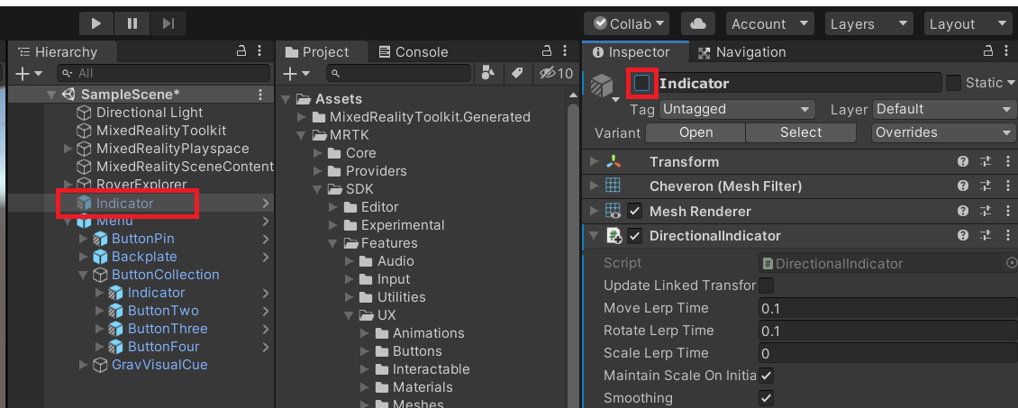예전에 만들어줬던 화살표모양의 Indicator를 드래그앤드롭 해주고
