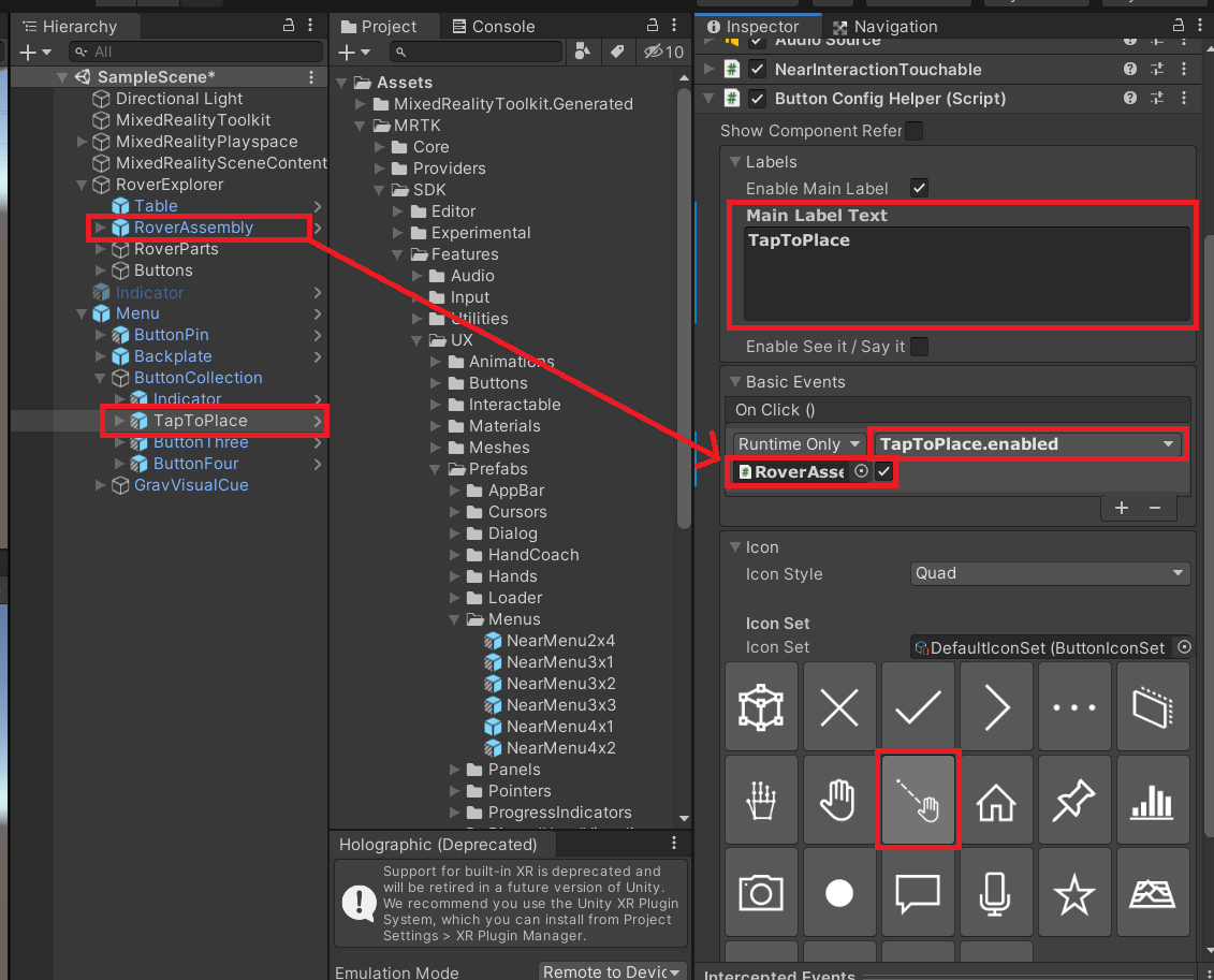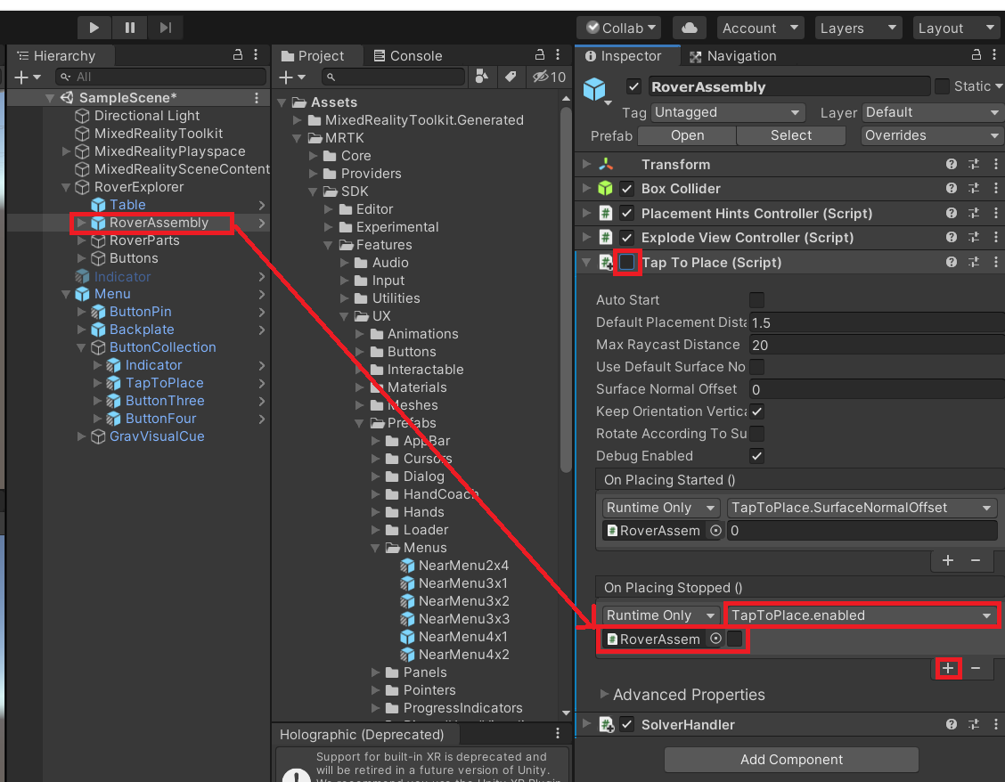 RoverAssembly의 TapToPlace의 체크를 해제해준다.