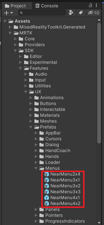 MRTK - SDK - Features - UX - Prefabs - Menus
