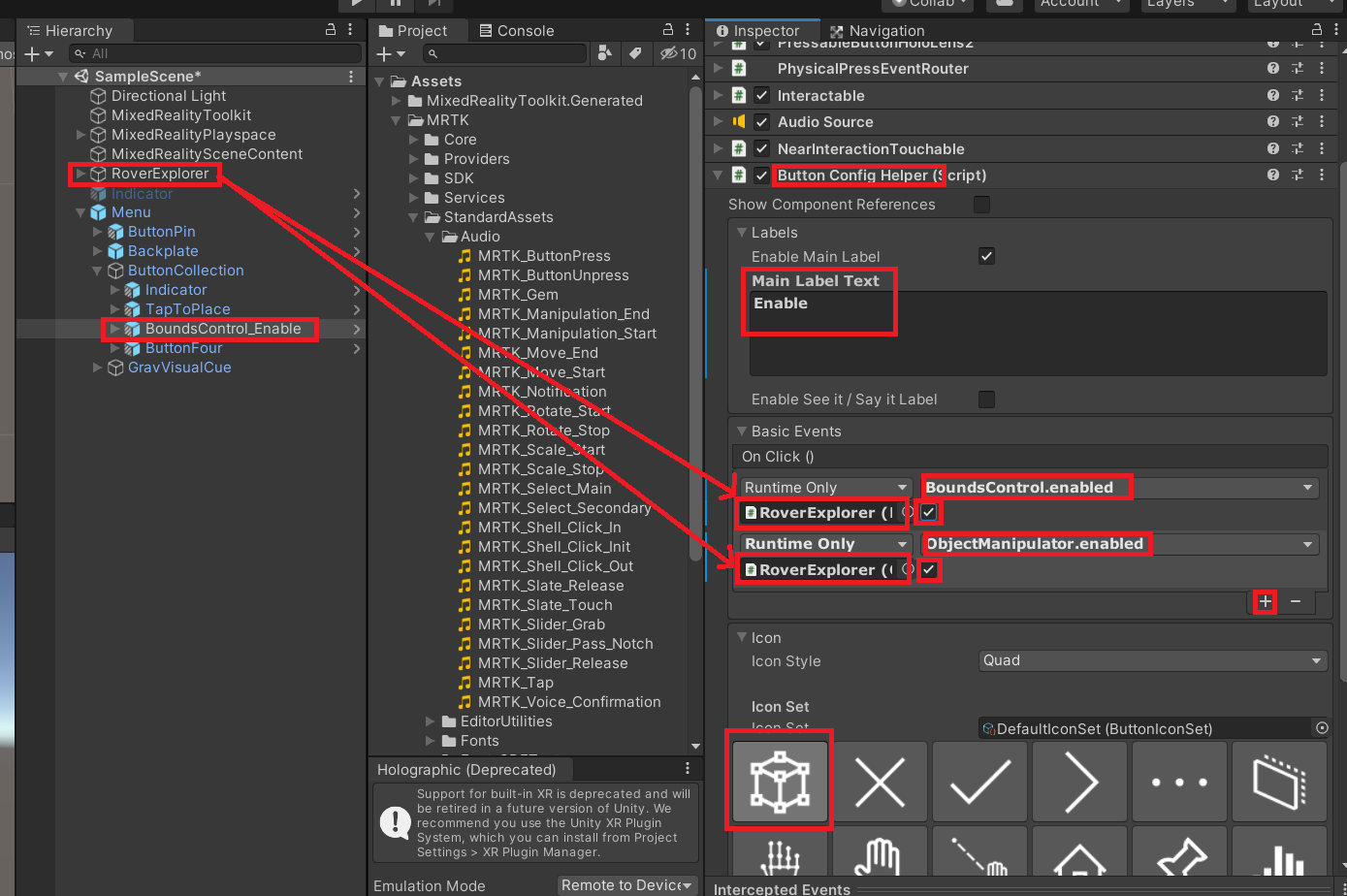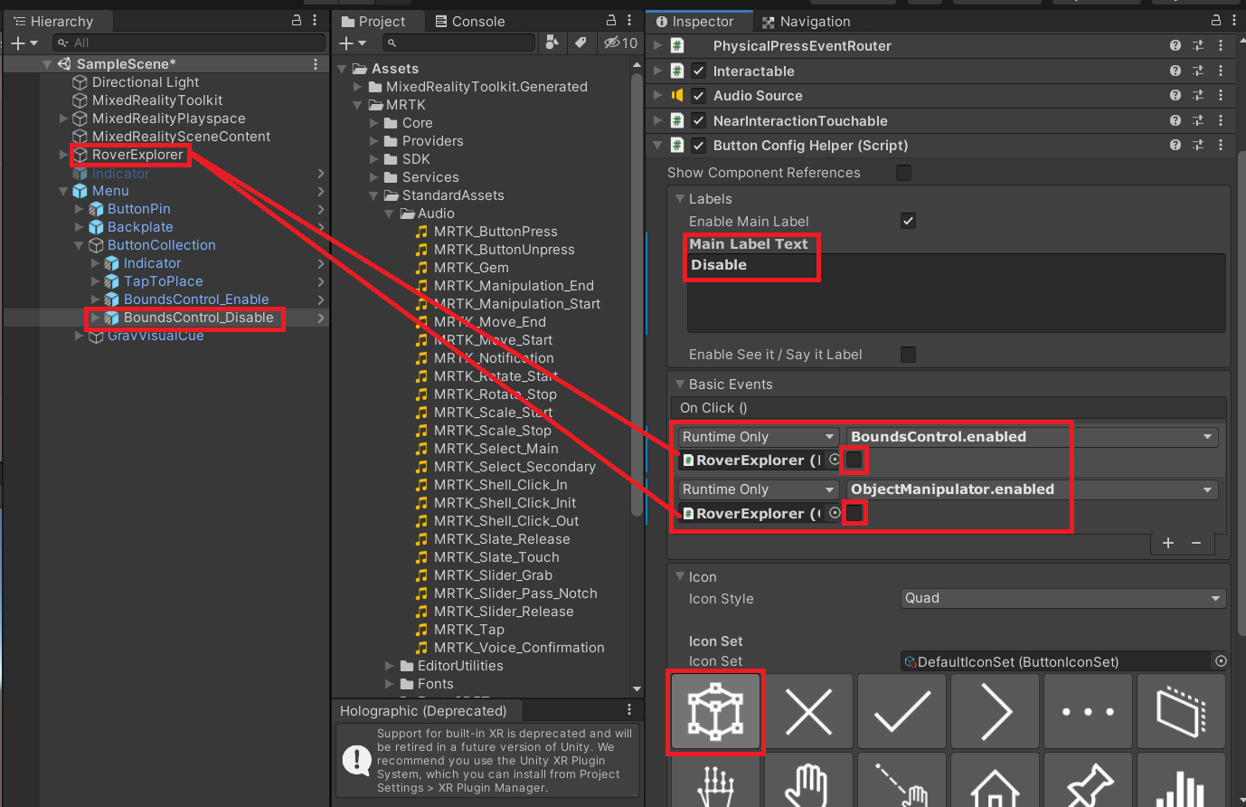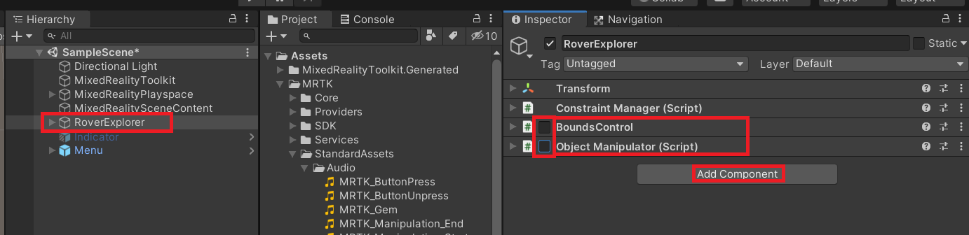 BoundsControl과 Object manipulator를 추가해준 뒤 체크를 해제해준다.