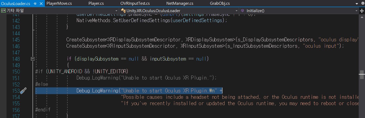 OculusLoader.cs에 있는 코드들을 사용해보려했는데 스크립트 수정 자체가 불가능했다.