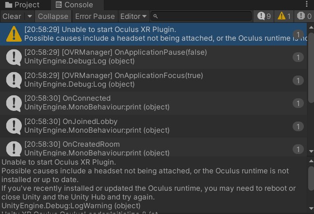 이 경우에는 PC와 VR이 유니티상의 버튼을 누르는 방식 차이점으로 해결하려고 했다.
